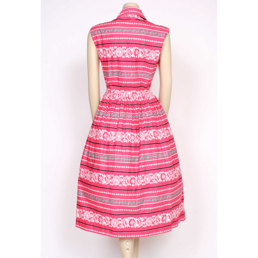Such a glorious 1950's dress from St Michael, a real classic! Crisp cotton, classic day dress shape, gathered waist, sleeveless, button-up front, collars, original side zips, belt loops but without it's belt, and the most amaaaazing jumbo pockets on the skirt! Great for all occasions and any season!